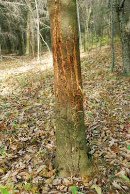 Straddle tree, notice hair left behind. Light color reflects oxidation of the hairs. Lighter the hair, older it is.